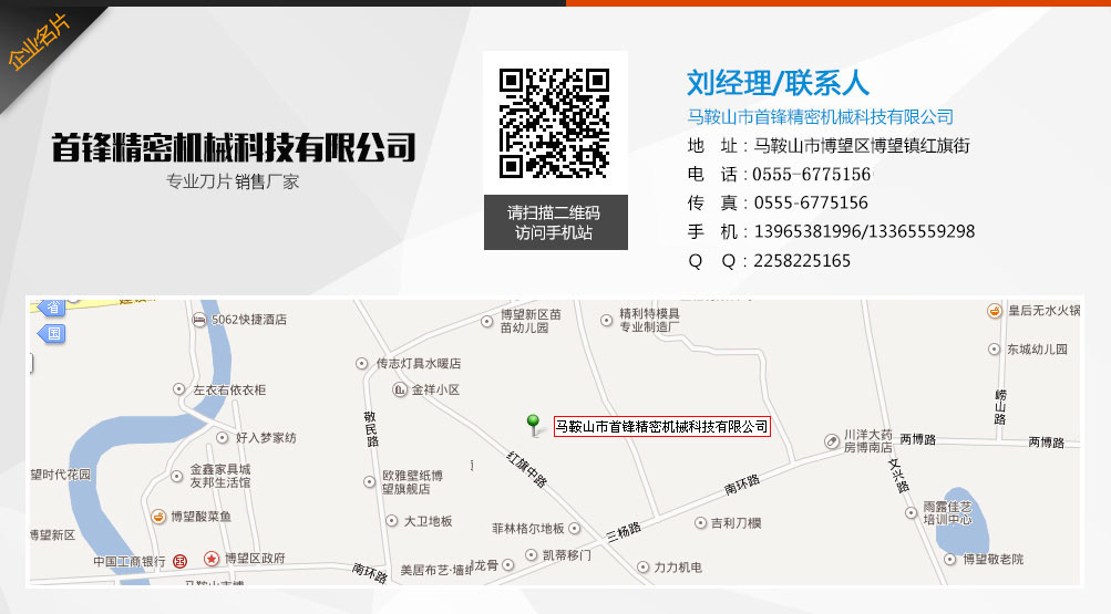 馬鞍山市首鋒精密機械科技有限公司位于中國之鄉馬鞍山市博望區博望鎮紅旗街。地理環境優越,交通便利。工業區內314省道貫穿,連接江、浙、滬、皖,距南京祿口國際機場30公里。 我們專業研發銷售各種機械圓刀、長刀、分切刀片、沖剪刀、剪板機刀片、等沖壓剪切刀具機械配件。產品廣泛應用于冶金、造紙、紙品加工、印刷、橡膠工業、塑料、木材加工、食品、金屬加工、皮革、無紡布、不干膠、膠帶、板材加工、軋鋼、紡織、五金機械等行業。 馬鞍山市首鋒精密機械科技有限公司,機械刀片加工歷史悠久,具有豐富的切削刀具加工經驗,擁有多條國內先進的研發設備和一套科學加工工藝,在保證了產品質量和品質的同時,使產品生產做到了程序化和規?;? 我們本著“誠信、求精、高效”的精神,期待著與國內外各界開展更為廣泛的交流與合作! 更多>